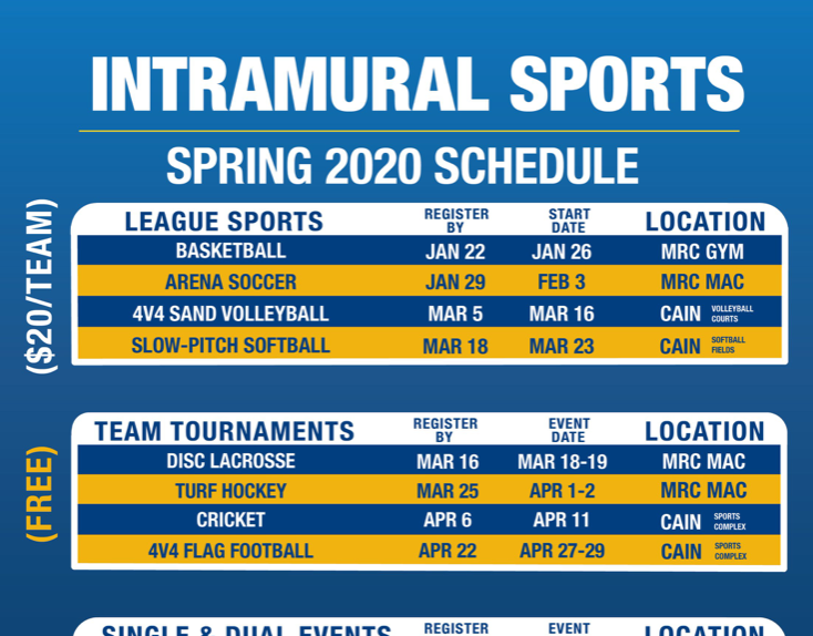 2020 Intramural Sports Campaign Calendar
