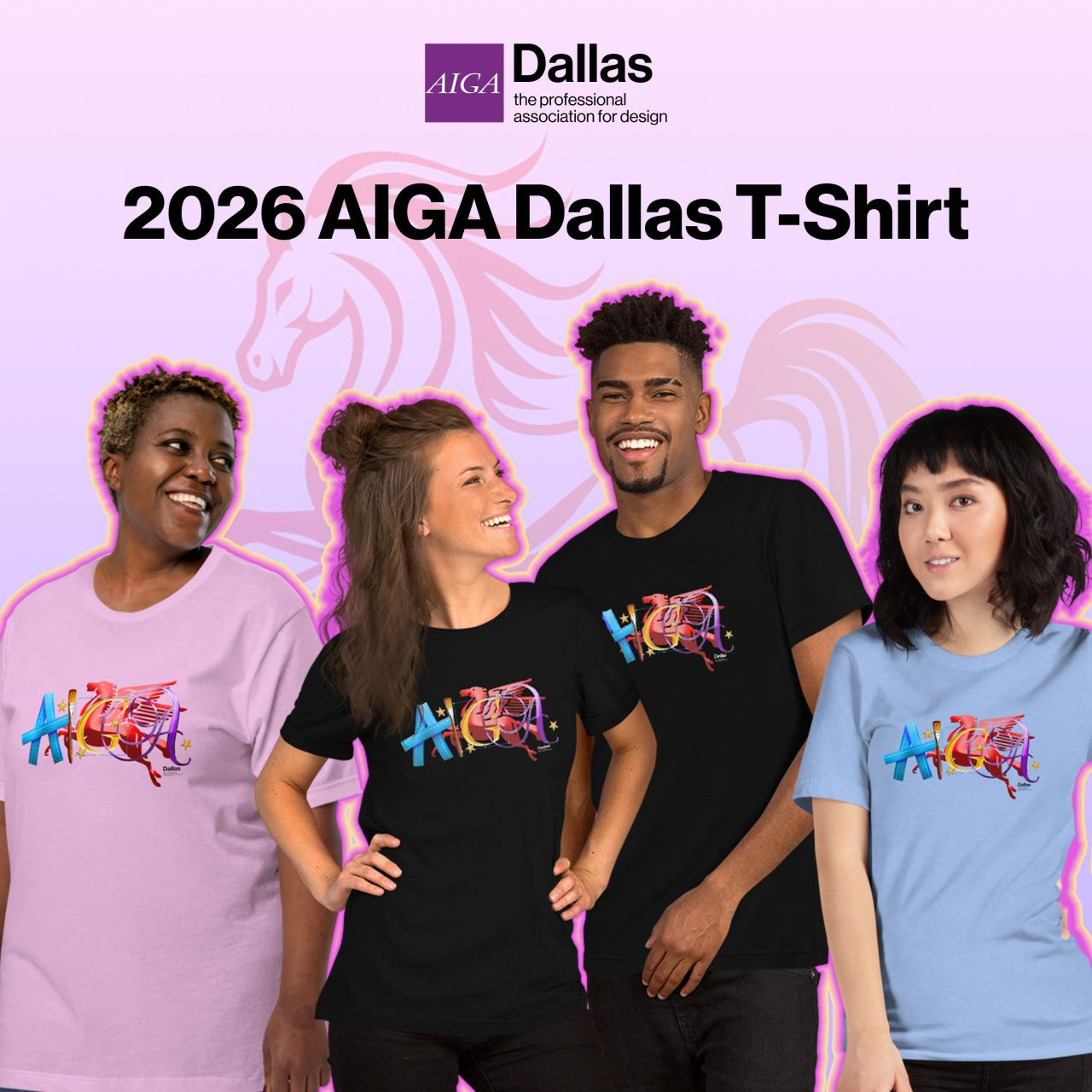 Fuel your creative momentum with the power of the Fire Horse—unbridled, electric, and impossible to ignore. This limited-edition AIGA Dallas tee features an exclusive design by Tony B. Roberson of Skybox Studios, winner of the 2026 AIGA Dallas T-Shirt Design Contest.
