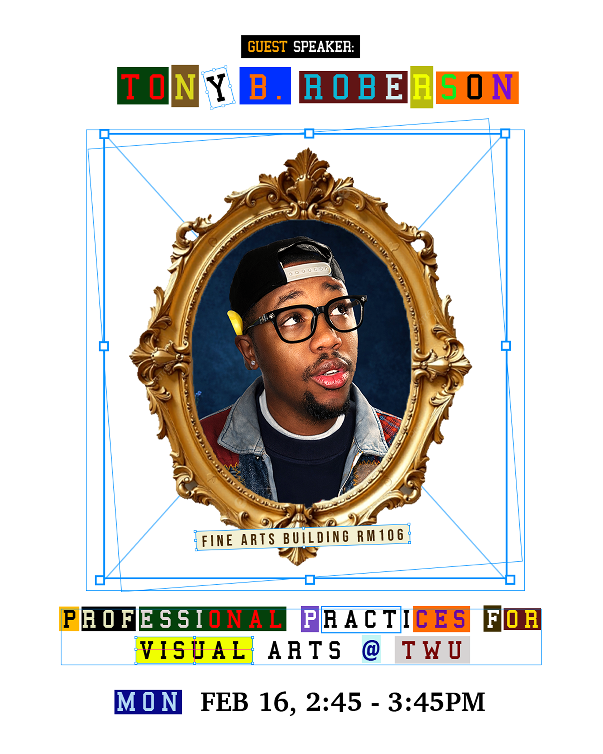 On February 16th from 2:45–3:45 PM, multidisciplinary creative Tony B. will guest speak at Texas Woman’s University (TWU), sharing insights into art, graphic design, and building a career in the creative industry.